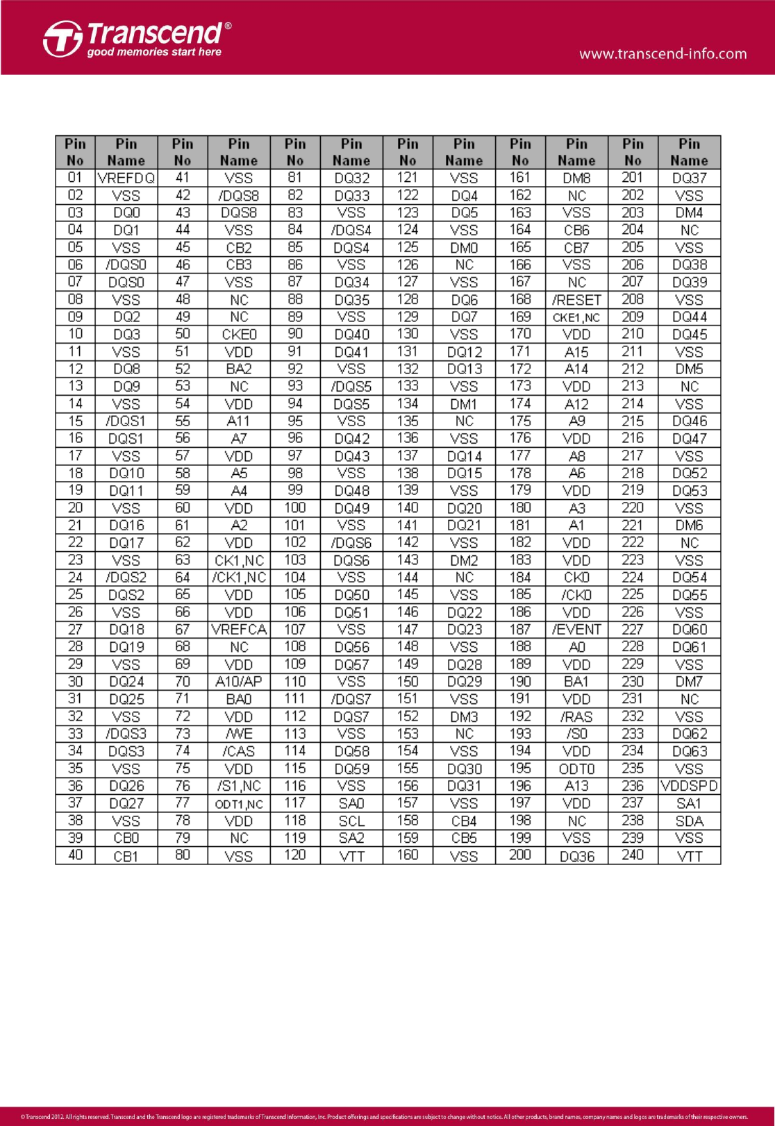 Speichermodule Transcend TS256MSK64V3N Datenblatt